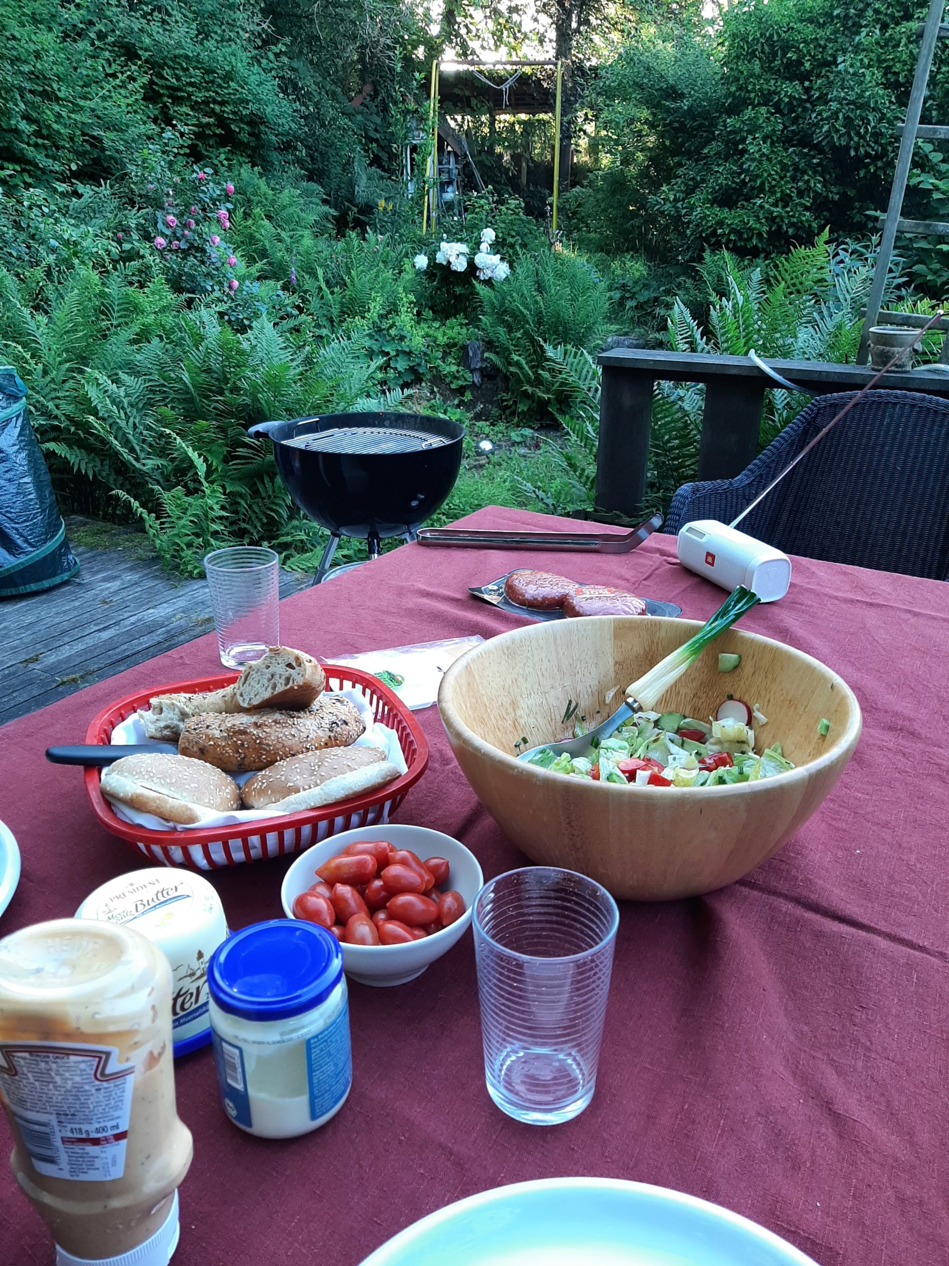 Nur die Staubmäuse-Versammlung blieb übrig. Heute spontane Abholung einer Liege, die wir über Ebay losgeworden sind. Mehr Platz!OK. Dritter Stock. Balkon. Wer hat dieses Ei hier gelassen? Weiß, kleiner als ein Hühnerei. Taubeneier sind nicht weiß, oder?Anfangen Sachen zusammenzu suchen für den Road-Trip, der am Mittwoch losgeht und über Köln (Konzert!) und Bad Zwischenahn (Journaling-Seminar!) Richtung Schweden führt. Auf zum Midsommar in Smaland!Upps! Die Orchidee durfte vor einigen Wochen weg vom sonnigen Fenster in den Schatten im Zimmer umziehen. hat ihr offensichtlich gut getan. Bin immer sehr verliebt in meine Orchideen, wenn sie wieder blühen. Diese hier ist zwei Jahre alt und hat inzwischen das dritte Mal von den ursprünglichen Stielen ausgetrieben.Dem Kater war’s heute viel zu warm, außerdem hatte er sich den Magen verdorben und schon mehrfach gebrochen. Das arme Tierchen. hat sich heute nur von einem geschützten Plätzchen zum nächsten bewegt. Er wird am Mittwoch 18, da müssen wir morgen wohl mal beim Tierarzt vorbeischauen. 🙁Der Balkon wartet auch noch auf’s Aufräumen. Umtopfen hab ich immerhin geschafft. Mehr vielleicht später, wenn es etwas kühler ist auf der Südseite.Nachmittagsdrink. Hatte bei meiner letzten Reise die leckere Mischung von Rinquinquon mit Tonic und Basilikum kennengelernt. Den Likör (Pfirsich) musste ich allein schon wegen des schönen Namens bestellen. Lecker wars auch…Die Grillvorbereitungen sind abgeschlossen, jetzt warten wir nur noch auf das Durchglühen der Kohlen.… und zwischendurch nach der Besuchskatze schauen. Sehr niedlich, sehr schnurrig. Sie bewacht jetzt erstmal die Brücke in den Garten.Yummie … 🙂Dann schnaufte es im Gebüsch, die Blätter wackelten und ein stacheliger Besuch schaute vorbei. – Ein Igel! Wir haben einen Igel im Garten! Mitten in der Stadt.…und jetzt noch ein bisschen in der Abendsonne sitzen. Feiner Sonntag!